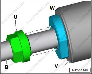 13. Відкрутіть гайку кріплення (6) з корпусу підшипника 2).
