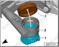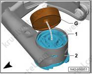 4. Обережно зніміть кришку (1) з амортизатора (2).