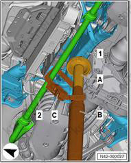 7. Посуньте зовнішній ШРУС приводного валу всередину та зніміть болти кріплення (2).