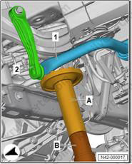 12. Підімкніть нижній важіль підвіски (1), щоб зняти навантаження у кріпленнях.