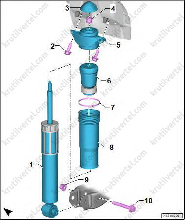 8. Зніміть опору амортизатора (2) з амортизатора (1).