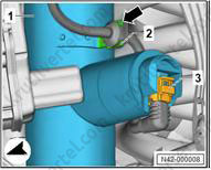 2. Від'єднайте електричний роз'єм (2) від електродвигуна гальма стоянки (1).