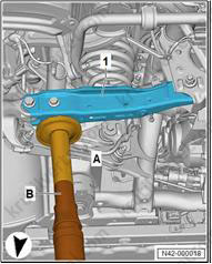 7. Підімкніть нижній важіль підвіски (1), щоб зняти навантаження у кріпленнях.