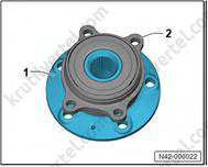 9. Розмістіть маточину зі ступичним підшипником (2) на поверхні так, щоб сама маточина (1) була внизу.