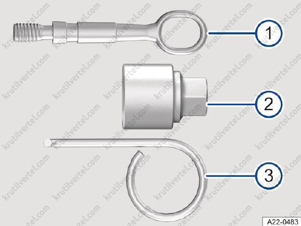 - Переходник для болтов-секреток. Volkswagen рекомендует всегда возить с собой переходник для болтов-секреток в наборе бортового инструмента. На торце переходника выбит кодовый номер колёсных болтов-секреток. По этому коду в случае утери можно приобрести новый переходник. Запишите кодовый номер колёсных болтов-секреток и храните его в надёжном месте вне автомобиля.
