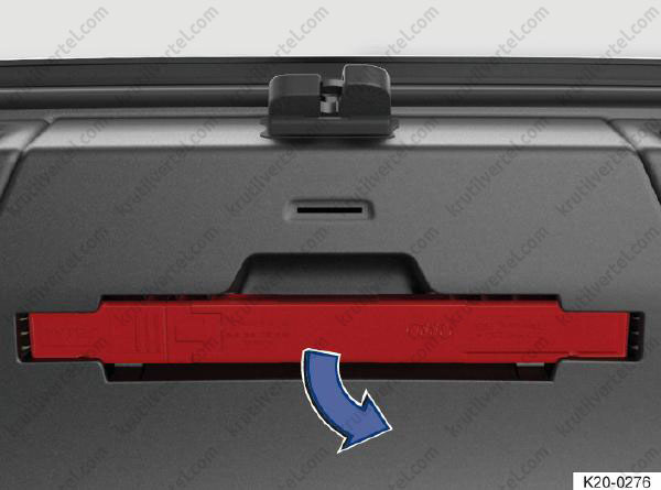 1. При открытой крышке багажного отсека возьмитесь за чехол со знаком аварийной остановки в месте углубления и поверните на 90° в направлении передней части автомобиля.
