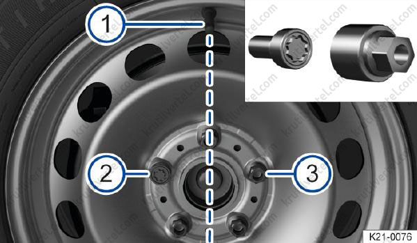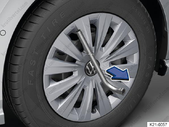 Самостоятельно заменять колёса разрешается только при условии, что автомобиль припаркован в безопасном месте и человек, выполняющий работы, обладает необходимыми навыками и инструментами и знает меры по обеспечению безопасности. Домкрат и баллонный ключ не входят в заводскую комплектацию некоторых автомобилей. В таком случае замену колёс производите на специализированном сервисном предприятии. Рекомендуем обращаться на дилерские предприятия Volkswagen.