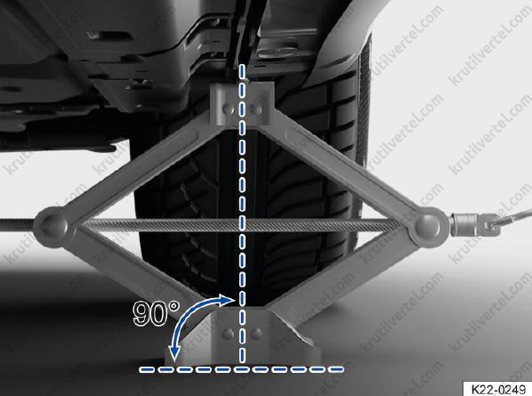 1. Остановите автомобиль на безопасном удалении от транспортного потока. При этом учитывайте все важные указания, касающиеся парковки. Основание, на котором стоит автомобиль, должно быть ровным и твёрдым. Наклонная или нетвёрдая поверхность под автомобилем может привести к соскальзыванию автомобиля с домкрата. При необходимости используйте широкую, прочную подкладку под домкрат.