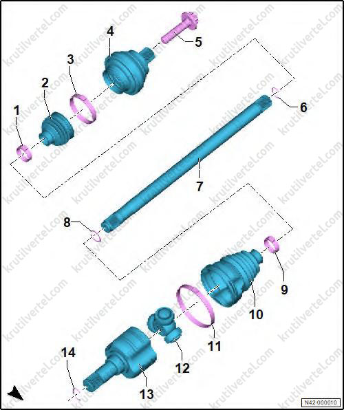 В качестве примера показан левый приводной вал.