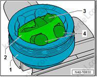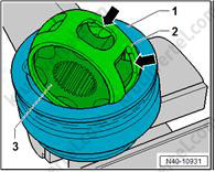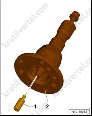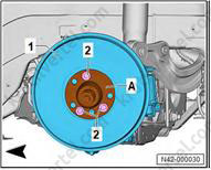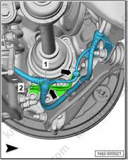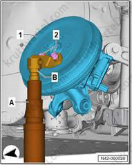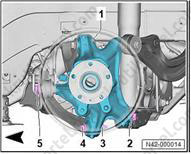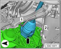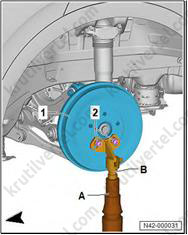 5. Используйте 24-миллиметровую головку (T10361A) для ослабления болта (1) максимум на 90°, когда автомобиль все еще стоит на колесах.