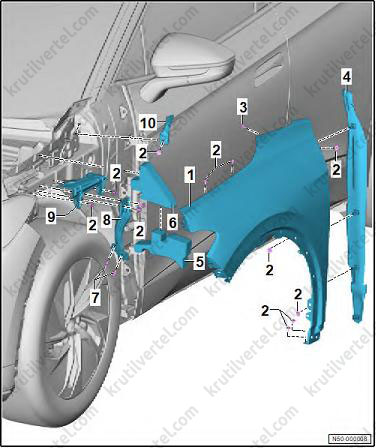 Снятие и установка переднего подкрылка