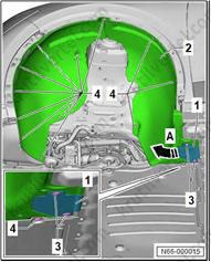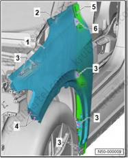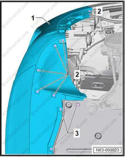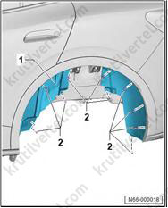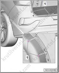 3. Снимите задний подкрылок (1).