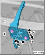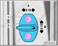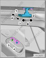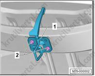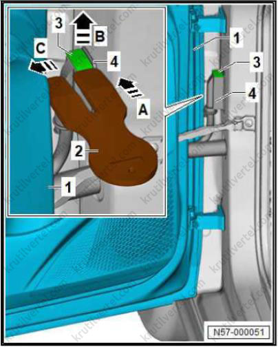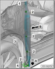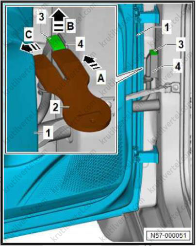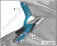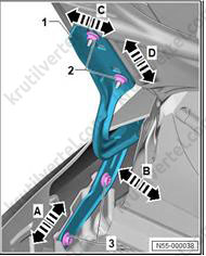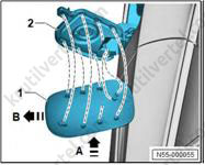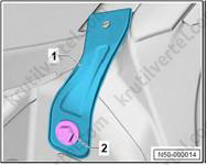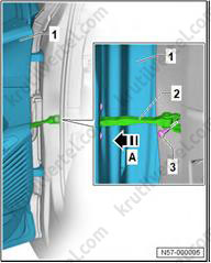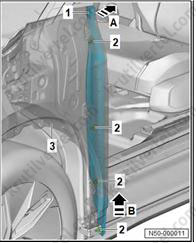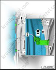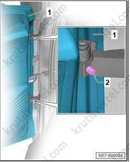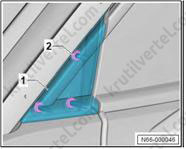 1. Важно: если крепежные штифты (2) повреждены, накладку стойки А необходимо заменить новой.