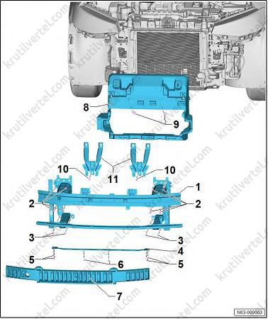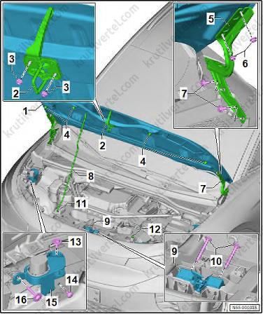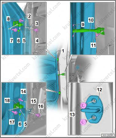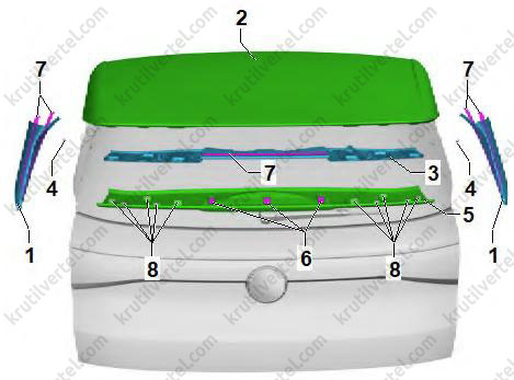Снятие и установка держателя для накладки спойлера