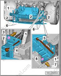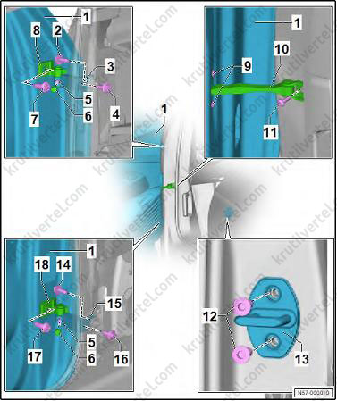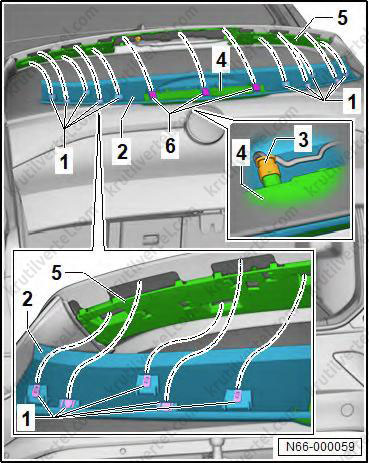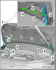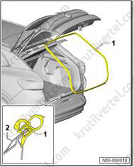 4. Вставьте центрирующие штифты (5) в дверь багажного отделения (6).