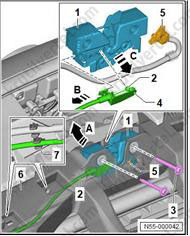 3. Разблокируйте фиксаторы (3) (стрелки A).