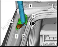 4. Снимите шланг для омывающей жидкости (6) с держателя (1).