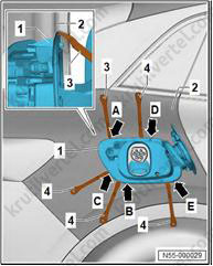 - Левая камера вспомогательных систем водителя (R244) / правая камера вспомогательных систем водителя (R245) (в зависимости от комплектации/версии).
