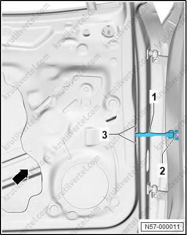 6. Установка выполняется в обратной последовательности. При установке обращайте внимание на следующие моменты: используйте дополнительные инструменты, чтобы ввести втулку со жгутом проводов в дверь.