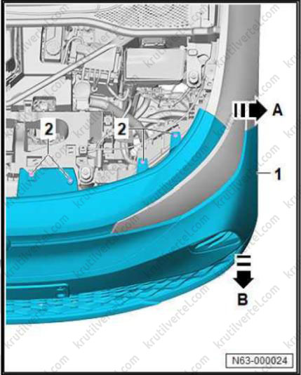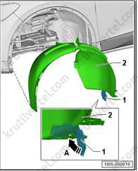 4. Снимите передний подкрылок (2).