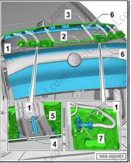 2. Установите шланг для омывающей жидкости (7) на держатель (1).