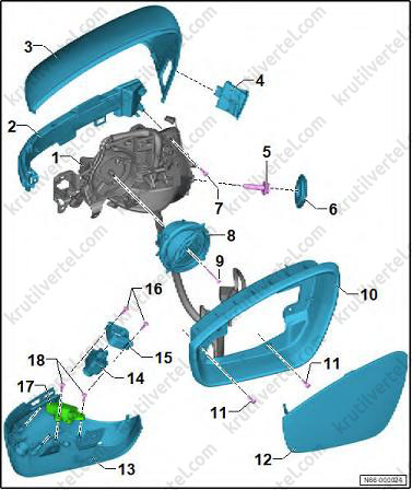 Снятие и установка наружного зеркала заднего вида