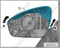 4. Снимите накладку зеркала (1) в направлении стрелки (B).