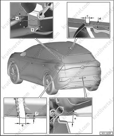 | g | 4,0 мм ±0,5 мм | Зазор между боковой панелью кузова и дверью багажного отделения |