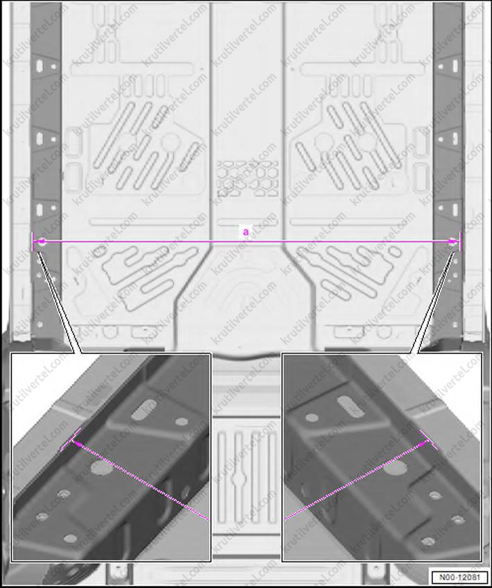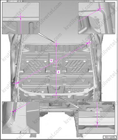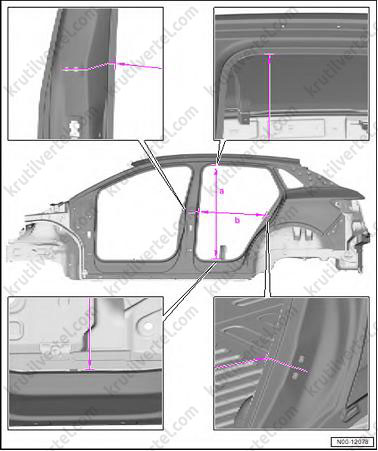 - Для определения размеров кузова следует использовать телескопическую линейку (VAS 5159) или (VAS 5160).