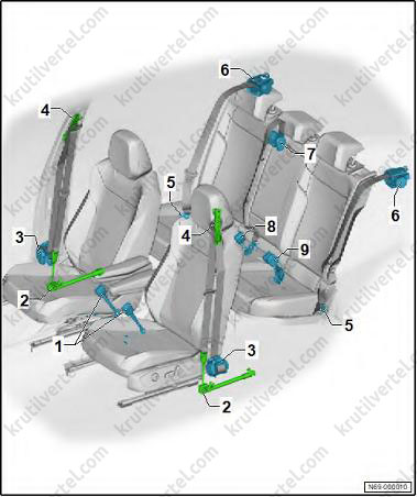 Ремни безопасности и их компоненты Volkswagen ID.4 с 2020 года