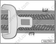 При сильной нагрузке системы ремней безопасности (пристегнутые ремни безопасности во время аварии) на пластмассовом покрытии проушины остаются параллельные мелкие канавки (частое использование ремня безопасности, напротив, приводит к равномерному износу с отсутствием полос). Проверьте пластмассовое покрытие на наличие деформаций, отслаиваний и образование трещин. При наличии канавок и/или повреждений - замените ремень безопасности вместе с замком ремня безопасности.