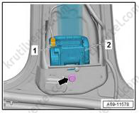 5. Отсоедините и снимите инерционную катушку ремня безопасности (2).
