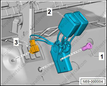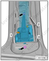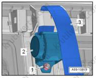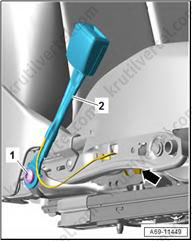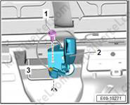 - На автомобилях с блоком управления преднатяжителя переднего левого ремня безопасности (J854) или блоком управления преднатяжителя переднего правого ремня безопасности (J855) после замены ремня безопасности адаптируйте компоненты к блоку управления подушек безопасности (J234) с помощью диагностического тестера автомобиля.