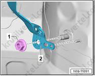 3. Отверните болт крепления (1) и снимите соответствующий замок заднего ремня безопасности (2).
