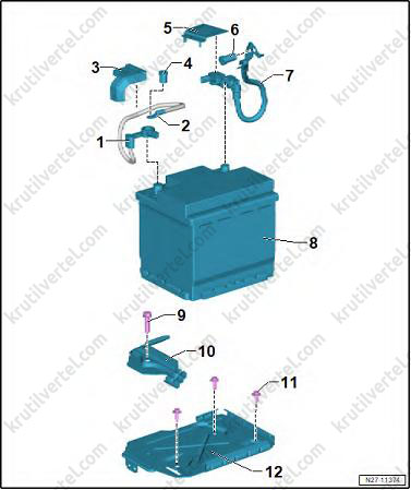 12-вольтную аккумуляторную батарею в дальнейшем будем именовать “аккумуляторная батарея”.