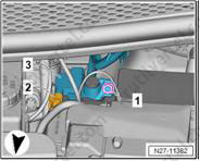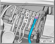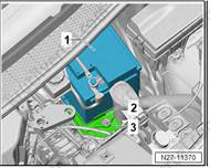 5. Установка выполняется в обратной последовательности. При установке обращайте внимание на следующие моменты: выполните адаптацию блока управления для контроля аккумуляторной батареи (J367) с помощью диагностического тестера автомобиля.