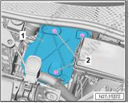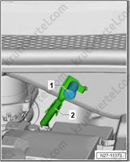 5. Извлеките крышку высоковольтного разъема в передней части автомобиля (1) из направляющей.