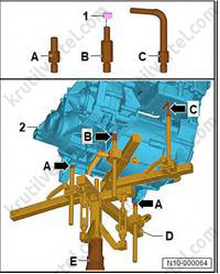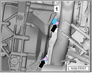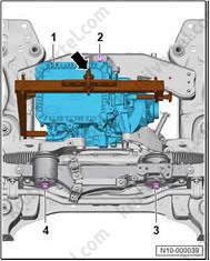 - Болт крепления опоры коробки передач, 2 шт. (заменять новым после каждого снятия), момент затяжки 50 Н·м + довернуть на 90°.