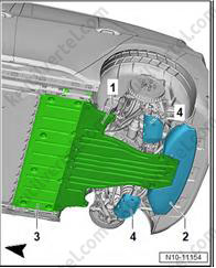 9. При помощи крана полностью снимите передний электродвигатель (1) с переднего подрамника.