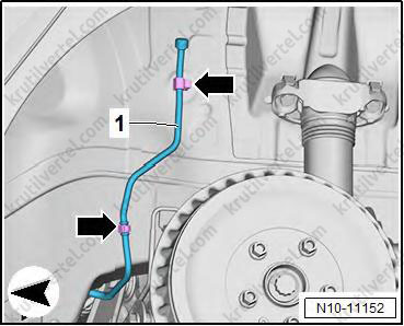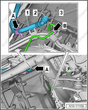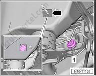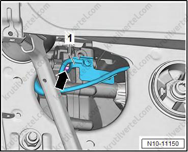6. Прикрепите кран (VAS 6100) к скобе (стрелка).