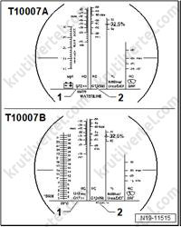 1. Для определения фактической температуры начала замерзания охлаждающей жидкости необходимо использовать рефрактометр (T10007A) или рефрактометр (T10007B).