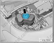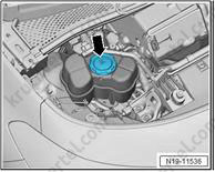 2. Откройте крышку (стрелка) расширительного бачка охлаждающей жидкости.
