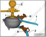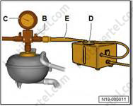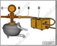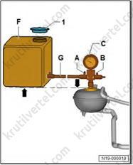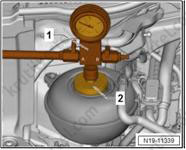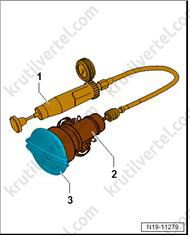 - Если давление не создается или снова падает: устройство для проверки системы охлаждения (V.A.G 1274 B) негерметично, использовать его нельзя.