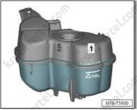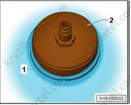 3. Навинтите адаптер (VAS 691 005/5) (1) на расширительный бачок охлаждающей жидкости (2).