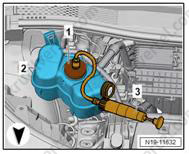4. Подсоедините устройство для проверки системы охлаждения (V.A.G 1274 B) (3) к адаптеру (1).