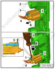 1. Отсоедините электрический разъем (4) от модуля педали акселератора (GX2) (1).