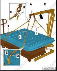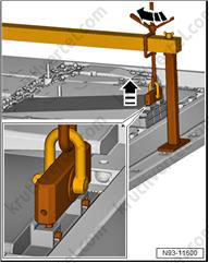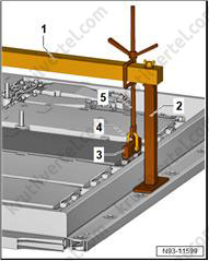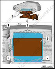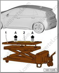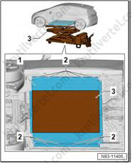 8. Поставьте поддон для сервисных кранов (VAS 6208) под заднюю часть автомобиля.
