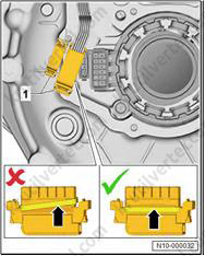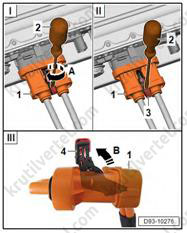 2. Вытяните фиксирующий элемент разъема (1) (стрелка A).