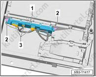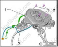 5. Снимите модуль 1 генератора звука двигателя (RX21) (1) с кронштейна (3).
