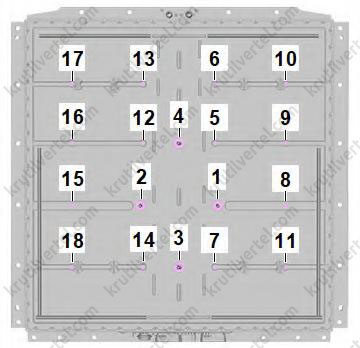 - Гайка крепления, 4 шт., момент затяжки 8 Н·м.